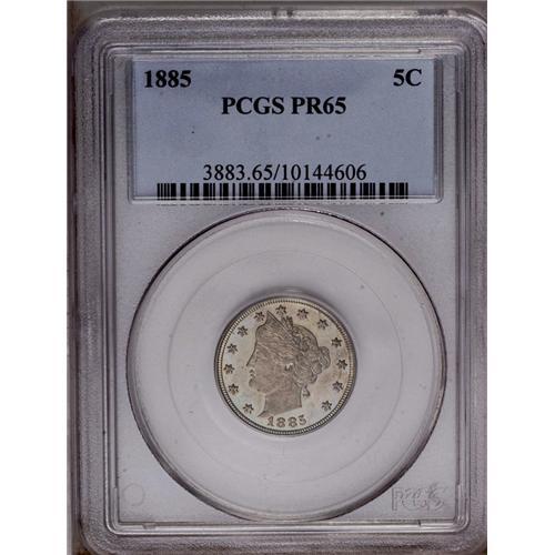 1885 5C PR65 PCGS. Lovely sky-blue, gold, and cream to