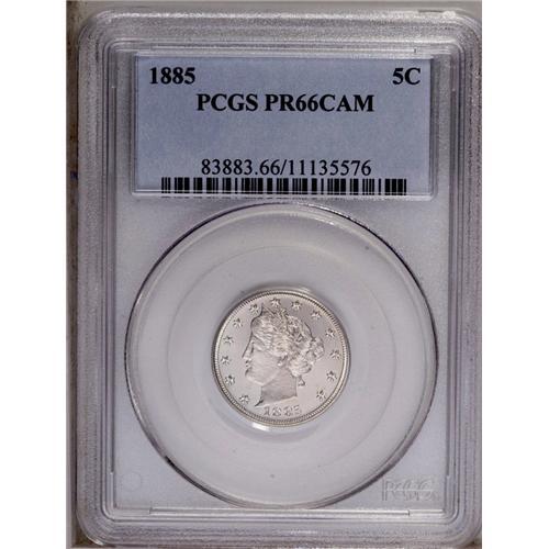 1885 5C PR66 Cameo PCGS. A stunning, two-toned Cameo c 1885[5C] PR66 Cameo PCGS.