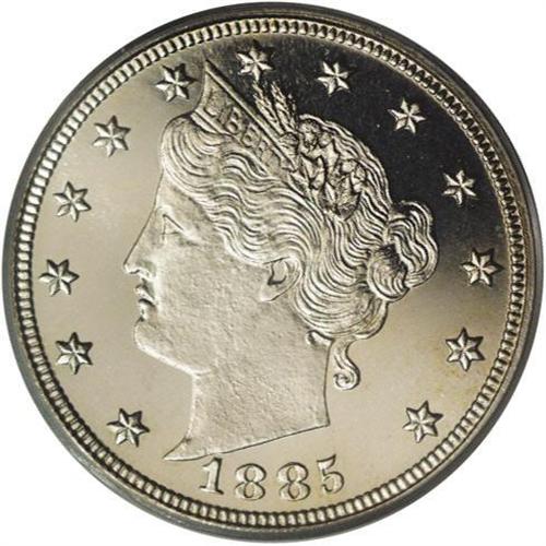 <B>1885<5C> PR66 Cameo PCGS.</B></I> This is the key-date among Liberty Head nickels, and Gem proof examples such as this coin provide an alternative to collectors of this series. A similar quality business strike of this date would cost many multiples of the value of this proof example. Both sides are fully brilliant with lovely nickel-gray color, accented by a splash of pale gold at the right side of the reverse. Sharply struck and highly attractive with excellent contrast. Population: 22 in 66 Cameo, 5 finer (3/06). <BR><BR><B>Important notice:</B> Heritage usually auctions material at the rate of 200-250 lots per hour. On some occasions eBay Live bid software or the Internet may not be able to keep up with the pace of the auction. We recommend placing a realistic absentee bid now as insurance to avoid disappointment. Occasionally the auctioneer may eliminate or reject an eBay Live bid, and the auctioneer may also reopen a lot after the close of the eBay live bidding (usually because we missed an audience bid), and may reject your bid even if it shows you as the winning bidder. By bidding via eBay Live, you agree that Heritage may award the lot to another bidder at its sole discretion under the circumstances described above or any other reasonable circumstances. Since eBay bids are not shown to us until we open the lot on the floor, we treat those bids just like floor bids. In most cases the floor responds before the eBay bid is presented to us, due to Internet lag time, so for consistency we have made it a policy that floor bids are always considered first over tie eBay live bids. Also please note that all Heritage lots purchased through eBay Live carry a 20% Buyer's Premium. Please make sure you read the Terms and Conditions before you bid. This lot is being auctioned in conjunction with a live floor auction by Heritage Galleries & Auctioneers. All final auction and invoice information will be supplied by Heritage Galleries & Auctioneers, and all other information should be considered preliminary. Lot:983 <BR><BR><B>Winning Notification and Billing:</B> After the FINAL session in this auction is complete, Heritage will send e-mail and snail mail invoices. This process normally takes several days. All final auction and invoice information will be supplied by Heritage Galleries & Auctioneers, and all other information should be considered preliminary. <BR><BR>This auction will be conducted on a live auction floor and over the Internet through eBay Live. If you choose to place an absentee bid, please take a moment to <font color='#0000ff'><u><a href='http://pages.ebay.com/liveauctions/help/before/laabsentee.html'>learn how eBay Live absentee bidding works</a></u></font><font color='#000000'>