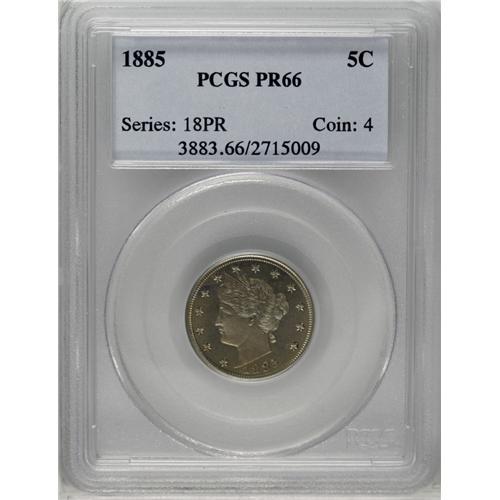 1885 5C PR66 PCGS. In business strike format, this dat 1885