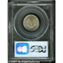 <B>1885<5C> PR66 PCGS.</B></I> This is a key-date issue among Liberty nickels, with business strikes being quite rare. Proof examples, while more plentiful, are hardly common. This lovely gem has light gray surfaces that are somewhat pebbly on the obverse. The design features are well struck, and there are no mentionable marks to report. Population: 94 in 66, 17 finer (9/04). <BR><BR><B>Important notice:</B> Heritage usually auctions material at the rate of 200-250 lots per hour. On some occasions eBay Live bid software or the Internet may not be able to keep up with the pace of the auction. We recommend placing a realistic absentee bid now as insurance to avoid disappointment. Occasionally the auctioneer may eliminate or reject an eBay Live bid, and the auctioneer may also reopen a lot after the close of the eBay live bidding (usually because we missed an audience bid), and may reject your bid even if it shows you as the winning bidder. By bidding via eBay Live, you agree that Heritage may award the lot to another bidder at its sole discretion under the circumstances described above or any other reasonable circumstances. Since eBay bids are not shown to us until we open the lot on the floor, we treat those bids just like floor bids. In most cases the floor responds before the eBay bid is presented to us, due to Internet lag time, so for consistency we have made it a policy that floor bids are always considered first over tie eBay live bids. Also please note that all Heritage lots purchased through eBay Live carry a 20% Buyer's Premium. Please make sure you read the Terms and Conditions before you bid.