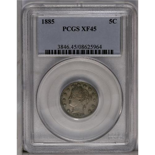 <B>1885<5C> XF45 PCGS.</B></I> A lightly circulated example of this important date, with the dove-gray surfaces worn in a highpoint pattern. Choice with a few handling marks and traces of original luster.