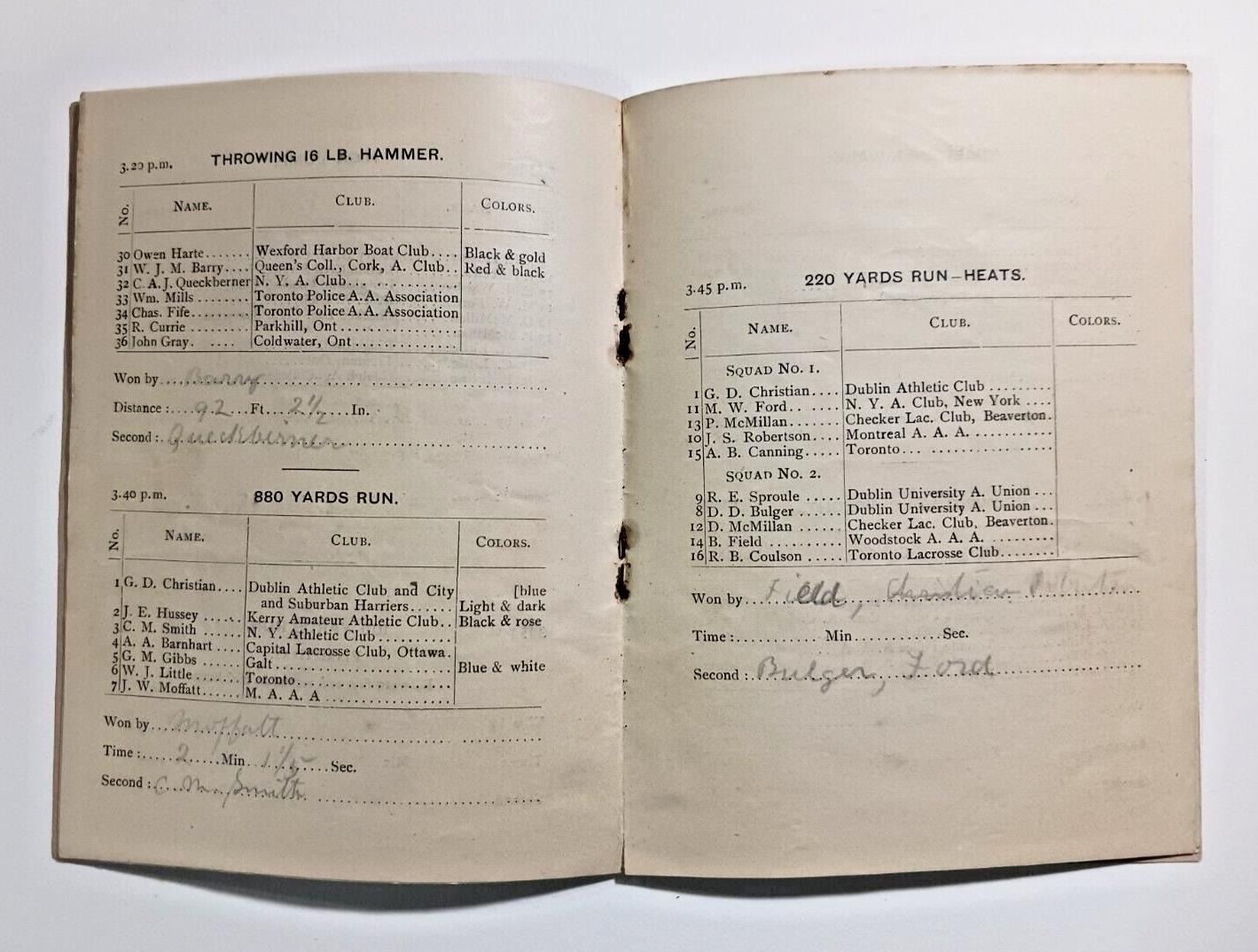 1885 AAA Canada Championship Games Program - RARE