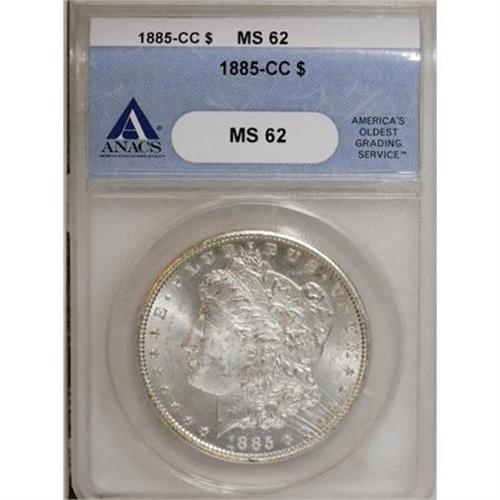 <B>1885-CC $1 MS62 ANACS.</B></I> . NGC Census: (411/5984). PCGS Population (1082/13888). Mintage: 228,000. Numismedia Wsl. Price for NGC/PCGS coin in MS62: $535. (#7160)<BR><BR><B>Coin Engraver:</B> George T. Morgan<BR><BR><b>Shipping:</b> Coins & Currency (<a target="_blank" href="http://www.heritageauctions.com/common/shipping.php">view shipping information</a>)