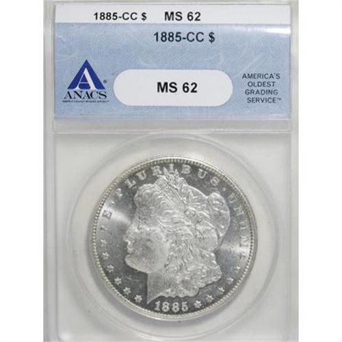<B>1885-CC $1 MS62 ANACS.</B></I> NGC Census: (411/5983). PCGS Population (1083/13913). Mintage: 228,000. Numismedia Wsl. Price for NGC/PCGS coin in MS62: $535. (#7160)<BR><BR><B>Coin Engraver:</B> George T. Morgan<BR><BR><b>Shipping:</b> Coins & Currency (<a target="_blank" href="http://www.heritageauctions.com/common/shipping.php">view shipping information</a>)