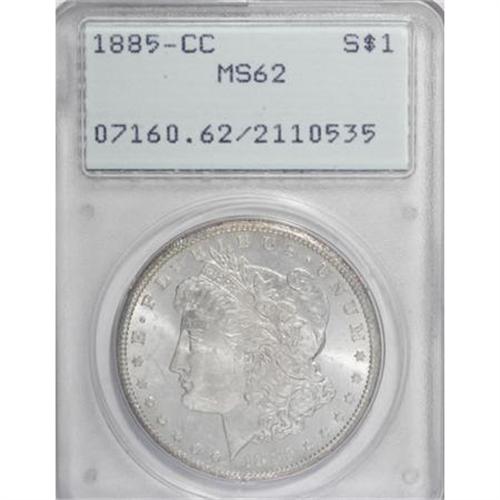 <B>1885-CC $1 MS62 PCGS.</B></I> . PCGS Population (1080/13830). NGC Census: (411/5978). Mintage: 228,000. Numismedia Wsl. Price for NGC/PCGS coin in MS62: $535. (#7160)<BR><BR><B>Coin Engraver:</B> George T. Morgan<BR><BR><b>Shipping:</b> Coins & Currency (<a target="_blank" href="http://www.heritageauctions.com/common/shipping.php">view shipping information</a>)