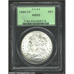 <TR><TD width="100%"><TABLE cellSpacing=1 cellPadding=3 width="100%" border=0><TBODY><TR><TD width="100%" bgColor=#79735c><FONT face=arial color=#ffffff size=3><B>Description</B> </FONT></TD></TR><TR><TD width="100%" bgColor=#ffffff><FONT face=arial size=2><B>1885-CC $1 MS63 PCGS.</B></I> This example is essentially brilliant, with a virtually pristine reverse, while the obverse has a high number of light to heavy marks. Well struck and highly lustrous. </FONT></TD></TR></TBODY></TABLE></TD></TR></TBODY></TABLE><BR><A name=PricesRealized></A><TABLE cellSpacing=0 cellPadding=0 width="100%" bgColor=#000000 border=0><TBODY><TR><TD width="100%"><TABLE cellSpacing=1 cellPadding=3 width="100%" border=0><TBODY><TR><TD width="100%" bgColor=#79735c><A name=PR><FONT face=arial color=#ffffff size=3><B>Previous Prices from Heritage Auctions</B> </FONT></A></TD></TR><TR><TD bgColor=#f6f6ed><TABLE cellSpacing=0 cellPadding=0 width="100%" border=1><TBODY><TR><TD align=middle width="33%"><B>Date</B></TD><TD align=middle width="33%"><B>Service</B></TD><TD align=middle width="33%"><B>Price</B></TD></TR><TR bgColor=whitesmoke><TD width="33%"><B>04/15/2003</B></TD><TD width="33%">PCGS</TD><TD width="33%">$310.50</TD></TR><TR bgColor=whitesmoke><TD width="33%"><B>04/15/2003</B></TD><TD width="33%">PCGS</TD><TD width="33%">$310.50</TD></TR><TR bgColor=whitesmoke><TD width="33%"><B>04/15/2003</B></TD><TD width="33%">PCGS</TD><TD width="33%">$310.50</TD></TR><TR bgColor=whitesmoke><TD width="33%"><B>03/24/2003</B></TD><TD width="33%">PCGS</TD><TD width="33%">$345.00</TD></TR><TR bgColor=whitesmoke><TD width="33%"><B>03/24/2003</B></TD><TD width="33%">PCGS</TD><TD width="33%">$345.00</TD></TR><TR bgColor=whitesmoke><TD width="33%"><B>03/24/2003</B></TD><TD width="33%">PCGS</TD><TD width="33%">$345.00</TD></TR><TR bgColor=whitesmoke><TD width="33%"><B>07/29/2002</B></TD><TD width="33%">PCGS</TD><TD width="33%">$270.25</TD></TR><TR bgColor=whitesmoke><TD width="33%"><B>07/29/2002</B></TD><TD width="33%">PCGS</TD><TD width="33%">$270.25</TD></TR><TR bgColor=whitesmoke><TD width="33%"><B>07/29/2002</B></TD><TD width="33%">PCGS</TD><TD width="33%">$270.25</TD></TR><TR bgColor=whitesmoke><TD width="33%"><B>07/29/2002</B></TD><TD width="33%">PCGS</TD><TD width="33%">$299.00</TD></TR><TR bgColor=whitesmoke><TD width="33%"><B>07/29/2002</B></TD><TD width="33%">PCGS</TD><TD width="33%">$299.00</TD></TR><TR bgColor=whitesmoke><TD width="33%"><B>07/29/2002</B></TD><TD width="33%">PCGS</TD><TD width="33%">$299.00</TD></TR><TR bgColor=whitesmoke><TD width="33%"><B>07/16/2002</B></TD><TD width="33%">PCGS</TD><TD width="33%">$281.75</TD></TR><TR bgColor=whitesmoke><TD width="33%"><B>07/16/2002</B></TD><TD width="33%">PCGS</TD><TD width="33%">$281.75</TD></TR><TR bgColor=whitesmoke><TD width="33%"><B>07/16/2002</B></TD><TD width="33%">PCGS</TD><TD width="33%">$281.75</TD></TR><TR bgColor=whitesmoke><TD width="33%"><B>07/09/2002</B></TD><TD width="33%">PCGS</TD><TD width="33%">$270.25</TD></TR><TR bgColor=whitesmoke><TD width="33%"><B>07/09/2002</B></TD><TD width="33%">PCGS</TD><TD width="33%">$270.25</TD></TR><TR bgColor=whitesmoke><TD width="33%"><B>07/09/2002</B></TD><TD width="33%">PCGS</TD><TD width="33%">$270.25</TD></TR><TR bgColor=whitesmoke><TD width="33%"><B>04/28/2002</B></TD><TD width="33%">PCGS</TD><TD width="33%">$258.75</TD></TR><TR bgColor=whitesmoke><TD width="33%"><B>04/28/2002</B></TD><TD width="33%">PCGS</TD><TD width="33%">$258.75</TD></TR><TR bgColor=whitesmoke><TD width="33%"><B>04/28/2002</B></TD><TD width="33%">PCGS</TD><TD width="33%">$258.75</TD></TR><TR bgColor=whitesmoke><TD width="33%"><B>02/05/2002</B></TD><TD width="33%">PCGS</TD><TD width="33%">$253.00</TD></TR><TR bgColor=whitesmoke><TD width="33%"><B>02/05/2002</B></TD><TD width="33%">PCGS</TD><TD width="33%">$253.00</TD></TR><TR bgColor=whitesmoke><TD width="33%"><B>02/05/2002</B></TD><TD width="33%">PCGS</TD><TD width="33%">$253.00</TD></TR><TR bgColor=whitesmoke><TD width="33%"><B>08/14/1999</B></TD><TD width="33%">PCGS</TD><TD width="33%">$189.75</TD></TR><TR bgColor=whitesmoke><TD width="33%"><B>08/14/1999</B></TD><TD width="33%">PCGS</TD><TD width="33%">$189.75</TD></TR><TR bgColor=whitesmoke><TD width="33%"><B>08/14/1999</B></TD><TD width="33%">PCGS</TD><TD width="33%">$189.75</TD></TR><TR bgColor=whitesmoke><TD width="33%"><B>06/07/1997</B></TD><TD width="33%">PCGS</TD><TD width="33%">$159.50</TD></TR><TR bgColor=whitesmoke><TD width="33%"><B>06/07/1997</B></TD><TD width="33%">PCGS</TD><TD width="33%">$159.50</TD></TR><TR bgColor=whitesmoke><TD width="33%"><B>06/07/1997</B></TD><TD width="33%">PCGS</TD><TD width="33%">$159.50</TD></TR><TR bgColor=whitesmoke><TD width="33%"><B>08/05/2001</B></TD><TD width="33%">PCGS</TD><TD width="33%">$264.50</TD></TR><TR bgColor=whitesmoke><TD width="33%"><B>08/05/2001</B></TD><TD width="33%">PCGS</TD><TD width="33%">$264.50</TD></TR><TR bgColor=whitesmoke><TD width="33%"><B>08/05/2001</B></TD><TD width="33%">PCGS</TD><TD width="33%">$264.50</TD></TR><TR bgColor=whitesmoke><TD width="33%"><B>06/07/1997</B></TD><TD width="33%">PCGS</TD><TD width="33%">$198.00</TD></TR><TR bgColor=whitesmoke><TD width="33%"><B>06/07/1997</B></TD><TD width="33%">PCGS</TD><TD width="33%">$198.00</TD></TR><TR bgColor=whitesmoke><TD width="33%"><B>06/07/1997</B></TD><TD width="33%">PCGS</TD><TD width="33%">$198.00</TD></TR><TR bgColor=whitesmoke><TD width="33%"><B>03/04/1994</B></TD><TD width="33%">PCGS</TD><TD width="33%">$170.50</TD></TR><TR bgColor=whitesmoke><TD width="33%"><B>03/04/1994</B></TD><TD width="33%">PCGS</TD><TD width="33%">$170.50</TD></TR><TR bgColor=whitesmoke><TD width="33%"><B>03/04/1994</B></TD><TD width="33%">PCGS</TD><TD width="33%">$170.50</TD></TR><TR bgColor=whitesmoke><TD width="33%"><B>04/24/2001</B></TD><TD width="33%">PCGS</TD><TD width="33%">$220.00</TD></TR><TR bgColor=whitesmoke><TD width="33%"><B>04/24/2001</B></TD><TD width="33%">PCGS</TD><TD width="33%">$220.00</TD></TR><TR bgColor=whitesm
