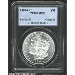 <TR><TD width="100%"><TABLE cellSpacing=1 cellPadding=3 width="100%" border=0><TBODY><TR><TD width="100%" bgColor=#79735c><FONT face=arial color=#ffffff size=3><B>Description</B> </FONT></TD></TR><TR><TD width="100%" bgColor=#ffffff><FONT face=arial size=2><B>1885-CC $1 MS63 PCGS.</B></I> Well struck with flashy, semi-prooflike fields, and frosty-white devices. Light hazy patina resides on the reverse fields. There are numerous contact marks on the obverse, while the reverse only has a few wispy blemishes. </FONT></TD></TR></TBODY></TABLE></TD></TR></TBODY></TABLE><BR><A name=PricesRealized></A><TABLE cellSpacing=0 cellPadding=0 width="100%" bgColor=#000000 border=0><TBODY><TR><TD width="100%"><TABLE cellSpacing=1 cellPadding=3 width="100%" border=0><TBODY><TR><TD width="100%" bgColor=#79735c><A name=PR><FONT face=arial color=#ffffff size=3><B>Previous Prices from Heritage Auctions</B> </FONT></A></TD></TR><TR><TD bgColor=#f6f6ed><TABLE cellSpacing=0 cellPadding=0 width="100%" border=1><TBODY><TR><TD align=middle width="33%"><B>Date</B></TD><TD align=middle width="33%"><B>Service</B></TD><TD align=middle width="33%"><B>Price</B></TD></TR><TR bgColor=whitesmoke><TD width="33%"><B>04/15/2003</B></TD><TD width="33%">PCGS</TD><TD width="33%">$310.50</TD></TR><TR bgColor=whitesmoke><TD width="33%"><B>04/15/2003</B></TD><TD width="33%">PCGS</TD><TD width="33%">$310.50</TD></TR><TR bgColor=whitesmoke><TD width="33%"><B>04/15/2003</B></TD><TD width="33%">PCGS</TD><TD width="33%">$310.50</TD></TR><TR bgColor=whitesmoke><TD width="33%"><B>03/24/2003</B></TD><TD width="33%">PCGS</TD><TD width="33%">$345.00</TD></TR><TR bgColor=whitesmoke><TD width="33%"><B>03/24/2003</B></TD><TD width="33%">PCGS</TD><TD width="33%">$345.00</TD></TR><TR bgColor=whitesmoke><TD width="33%"><B>03/24/2003</B></TD><TD width="33%">PCGS</TD><TD width="33%">$345.00</TD></TR><TR bgColor=whitesmoke><TD width="33%"><B>07/29/2002</B></TD><TD width="33%">PCGS</TD><TD width="33%">$270.25</TD></TR><TR bgColor=whitesmoke><TD width="33%"><B>07/29/2002</B></TD><TD width="33%">PCGS</TD><TD width="33%">$270.25</TD></TR><TR bgColor=whitesmoke><TD width="33%"><B>07/29/2002</B></TD><TD width="33%">PCGS</TD><TD width="33%">$270.25</TD></TR><TR bgColor=whitesmoke><TD width="33%"><B>07/29/2002</B></TD><TD width="33%">PCGS</TD><TD width="33%">$299.00</TD></TR><TR bgColor=whitesmoke><TD width="33%"><B>07/29/2002</B></TD><TD width="33%">PCGS</TD><TD width="33%">$299.00</TD></TR><TR bgColor=whitesmoke><TD width="33%"><B>07/29/2002</B></TD><TD width="33%">PCGS</TD><TD width="33%">$299.00</TD></TR><TR bgColor=whitesmoke><TD width="33%"><B>07/16/2002</B></TD><TD width="33%">PCGS</TD><TD width="33%">$281.75</TD></TR><TR bgColor=whitesmoke><TD width="33%"><B>07/16/2002</B></TD><TD width="33%">PCGS</TD><TD width="33%">$281.75</TD></TR><TR bgColor=whitesmoke><TD width="33%"><B>07/16/2002</B></TD><TD width="33%">PCGS</TD><TD width="33%">$281.75</TD></TR><TR bgColor=whitesmoke><TD width="33%"><B>07/09/2002</B></TD><TD width="33%">PCGS</TD><TD width="33%">$270.25</TD></TR><TR bgColor=whitesmoke><TD width="33%"><B>07/09/2002</B></TD><TD width="33%">PCGS</TD><TD width="33%">$270.25</TD></TR><TR bgColor=whitesmoke><TD width="33%"><B>07/09/2002</B></TD><TD width="33%">PCGS</TD><TD width="33%">$270.25</TD></TR><TR bgColor=whitesmoke><TD width="33%"><B>04/28/2002</B></TD><TD width="33%">PCGS</TD><TD width="33%">$258.75</TD></TR><TR bgColor=whitesmoke><TD width="33%"><B>04/28/2002</B></TD><TD width="33%">PCGS</TD><TD width="33%">$258.75</TD></TR><TR bgColor=whitesmoke><TD width="33%"><B>04/28/2002</B></TD><TD width="33%">PCGS</TD><TD width="33%">$258.75</TD></TR><TR bgColor=whitesmoke><TD width="33%"><B>02/05/2002</B></TD><TD width="33%">PCGS</TD><TD width="33%">$253.00</TD></TR><TR bgColor=whitesmoke><TD width="33%"><B>02/05/2002</B></TD><TD width="33%">PCGS</TD><TD width="33%">$253.00</TD></TR><TR bgColor=whitesmoke><TD width="33%"><B>02/05/2002</B></TD><TD width="33%">PCGS</TD><TD width="33%">$253.00</TD></TR><TR bgColor=whitesmoke><TD width="33%"><B>08/14/1999</B></TD><TD width="33%">PCGS</TD><TD width="33%">$189.75</TD></TR><TR bgColor=whitesmoke><TD width="33%"><B>08/14/1999</B></TD><TD width="33%">PCGS</TD><TD width="33%">$189.75</TD></TR><TR bgColor=whitesmoke><TD width="33%"><B>08/14/1999</B></TD><TD width="33%">PCGS</TD><TD width="33%">$189.75</TD></TR><TR bgColor=whitesmoke><TD width="33%"><B>06/07/1997</B></TD><TD width="33%">PCGS</TD><TD width="33%">$159.50</TD></TR><TR bgColor=whitesmoke><TD width="33%"><B>06/07/1997</B></TD><TD width="33%">PCGS</TD><TD width="33%">$159.50</TD></TR><TR bgColor=whitesmoke><TD width="33%"><B>06/07/1997</B></TD><TD width="33%">PCGS</TD><TD width="33%">$159.50</TD></TR><TR bgColor=whitesmoke><TD width="33%"><B>08/05/2001</B></TD><TD width="33%">PCGS</TD><TD width="33%">$264.50</TD></TR><TR bgColor=whitesmoke><TD width="33%"><B>08/05/2001</B></TD><TD width="33%">PCGS</TD><TD width="33%">$264.50</TD></TR><TR bgColor=whitesmoke><TD width="33%"><B>08/05/2001</B></TD><TD width="33%">PCGS</TD><TD width="33%">$264.50</TD></TR><TR bgColor=whitesmoke><TD width="33%"><B>06/07/1997</B></TD><TD width="33%">PCGS</TD><TD width="33%">$198.00</TD></TR><TR bgColor=whitesmoke><TD width="33%"><B>06/07/1997</B></TD><TD width="33%">PCGS</TD><TD width="33%">$198.00</TD></TR><TR bgColor=whitesmoke><TD width="33%"><B>06/07/1997</B></TD><TD width="33%">PCGS</TD><TD width="33%">$198.00</TD></TR><TR bgColor=whitesmoke><TD width="33%"><B>03/04/1994</B></TD><TD width="33%">PCGS</TD><TD width="33%">$170.50</TD></TR><TR bgColor=whitesmoke><TD width="33%"><B>03/04/1994</B></TD><TD width="33%">PCGS</TD><TD width="33%">$170.50</TD></TR><TR bgColor=whitesmoke><TD width="33%"><B>03/04/1994</B></TD><TD width="33%">PCGS</TD><TD width="33%">$170.50</TD></TR><TR bgColor=whitesmoke><TD width="33%"><B>04/24/2001</B></TD><TD width="33%">PCGS</TD><TD width="33%">$220.00</TD></TR><TR bgColor=whitesmoke><TD width="33%"><B>04/24/2001</B></TD><TD width="33%">PCGS</T