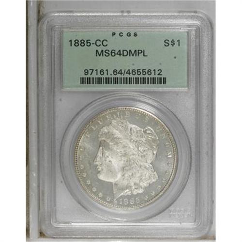 <B>1885-CC $1 MS64 Deep Mirror Prooflike PCGS.</B></I> Choice and boldly impressed with deep reflectivity and excellent contrast. The heavily frosted devices have few marks for the grade, though the fields are lightly abraded. A wonderful example of this low-mintage, yet available issue. Housed in a green label holder.<BR><BR><b>Shipping:</b> Coins & Currency (<a target="_blank" href="http://www.heritageauctions.com/common/shipping.php">view shipping information</a>)