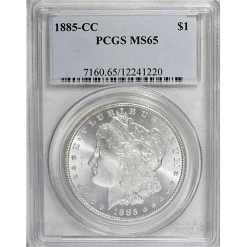 <B>1885-CC $1 MS65 PCGS.</B></I> Fully struck with flashy mint luster. This is a lovely, eye-appealing example of this popular, low mintage Carson City dollar.<BR><BR><B>Coin Engraver:</B> George T. Morgan<BR><BR><b>Shipping:</b> Coins & Currency (<a target="_blank" href="http://www.heritageauctions.com/common/shipping.php">view shipping information</a>)