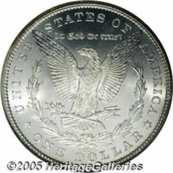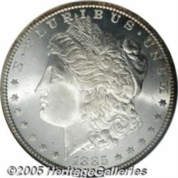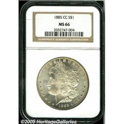 <B>1885-CC<img border='0' src='http://www.heritagecoins.com/images/star.gif' width=10 height=10>$1 MS66 NGC.</B></I> Virtually untoned with incredible frostiness and sparkling fields that show just a couple well disguised blemishes. Always a popular item in this outstanding condition.