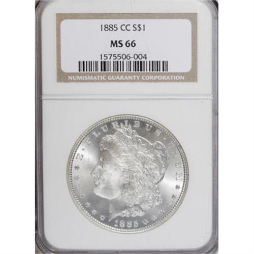 <B>1885-CC $1 MS66 NGC.</B></I> A brilliant and highly lustrous example of this popular, low mintage CC dollar. Sharply struck and problem-free.<BR><BR><b>Shipping:</b> Coins & Currency (<a target="_blank" href="http://www.heritageauctions.com/common/shipping.php">view shipping information</a>)