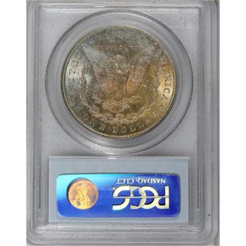<B>1885-CC $1 MS66 PCGS.</B></I> Impressively toned in dusky peach, sky-blue, and plum-red patina. Nicely struck and highly lustrous with pleasantly unperturbed features.<BR><BR><B>Coin Engraver:</B> George T. Morgan<BR><BR><b>Shipping:</b> Coins & Currency (<a target="_blank" href="http://www.heritageauctions.com/common/shipping.php">view shipping information</a>)