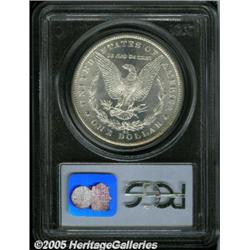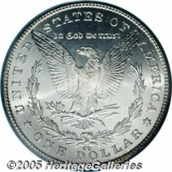<B>1885-CC<img border='0' src='http://www.heritagecoins.com/images/star.gif' width=10 height=10>$1 MS67 PCGS.</B></I> Just 228,000 examples of this issue were coined, and this total is hands-down the lowest mintage of any Carson City Mint Morgan dollar. Despite the low mintage, this is not a rarity among coins of the series, as many were hoarded by the Government, and not released for another 80 to 90 years. Today, these coins remain available in the marketplace. This is a sharply struck Superb Gem with exquisite surfaces and impressive white luster. Population: 36 in 67, 1 finer (2/05).