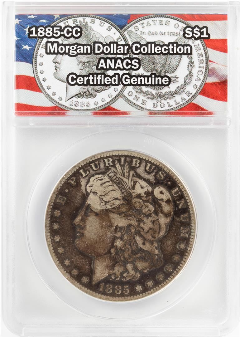 One 1885-CC $1 Morgan Silver Dollar Coin ANACS Certified Genuine. ANACS Certified.