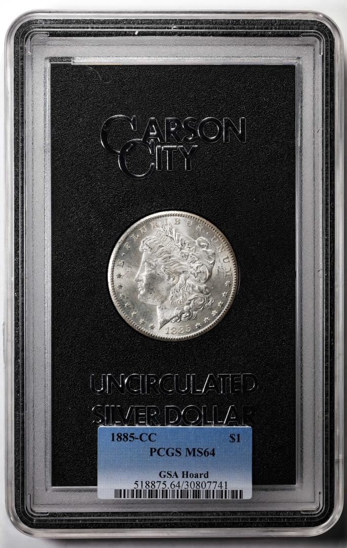 One 1885-CC $1 Morgan Silver Dollar Coin GSA Hoard Uncirculated PCGS MS64. PCGS Graded.