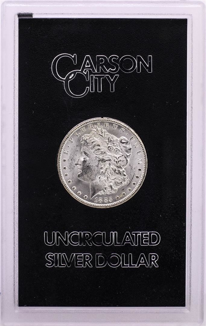One 1885-CC $1 Morgan Silver Dollar Coin GSA Hoard Uncirculated w/Box and COA.