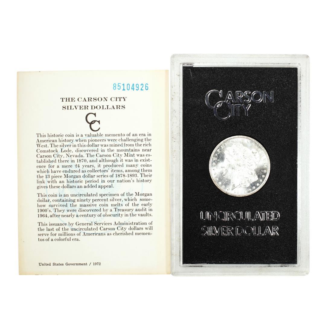 One 1885-CC $1 Morgan Silver Dollar Coin GSA Hoard Uncirculated with COA.