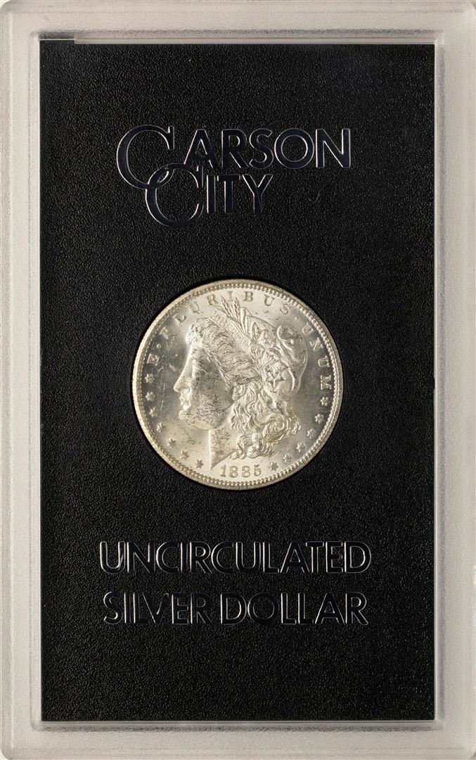 One 1885-CC $1 Morgan Silver Dollar Coin GSA Hoard Uncirculated.