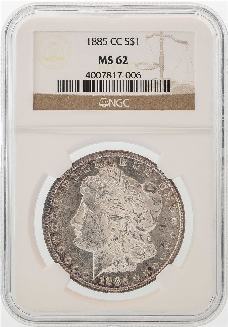 One 1885-CC $1 Morgan Silver Dollar Coin NGC MS62. NGC Certified.