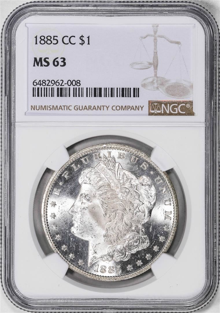 One 1885-CC $1 Morgan Silver Dollar Coin NGC MS63. NGC Certified.