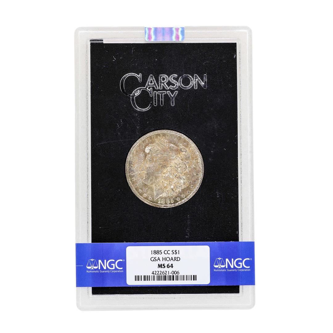 One 1885-CC $1 Morgan Silver Dollar Coin NGC MS64 GSA Hoard. NGC Certified.