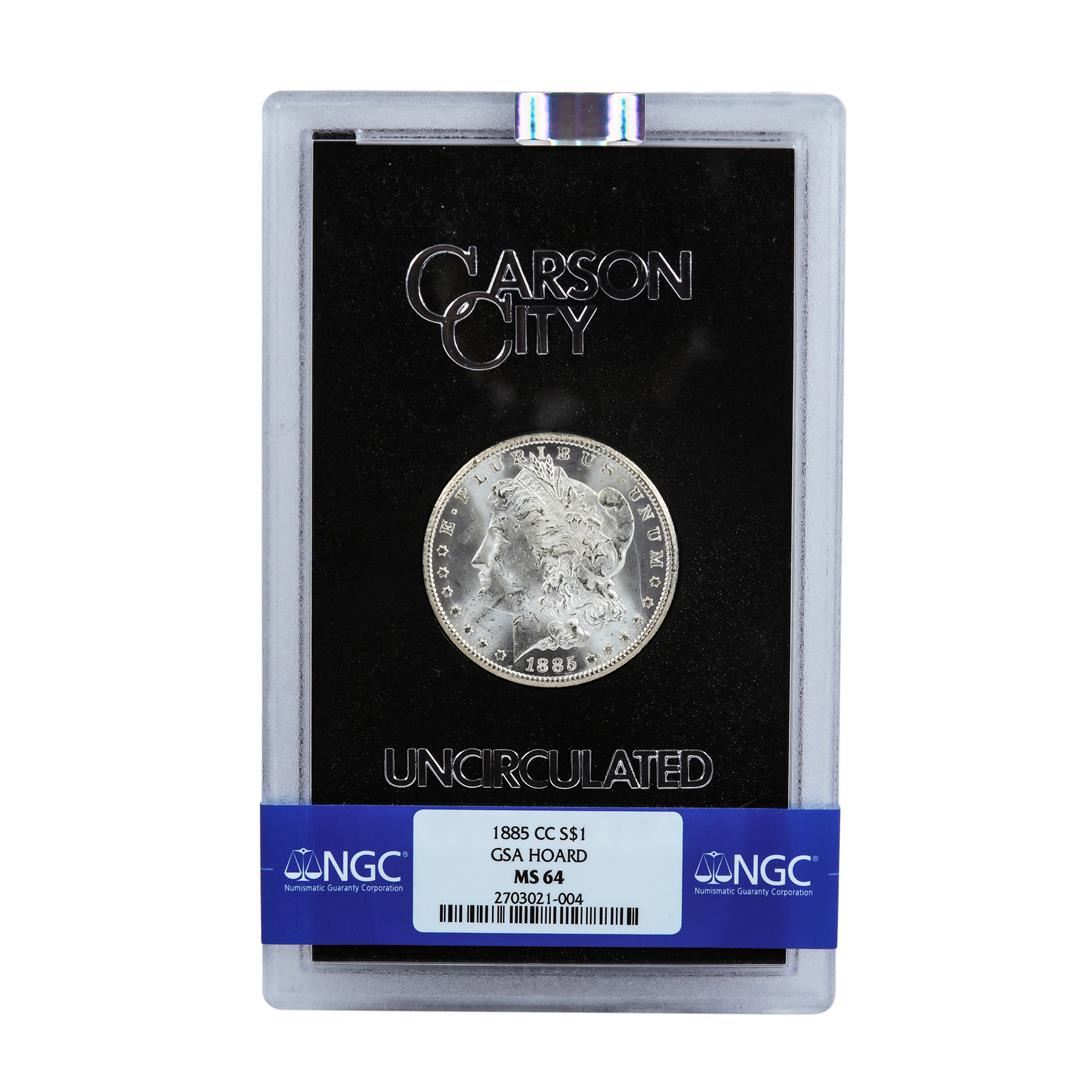 One 1885-CC $1 Morgan Silver Dollar Coin NGC MS64 GSA w/ Box & COA. NGC Certified.