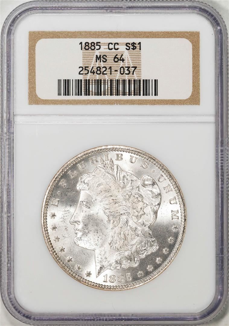 One 1885-CC $1 Morgan Silver Dollar Coin NGC MS64. NGC Certified.