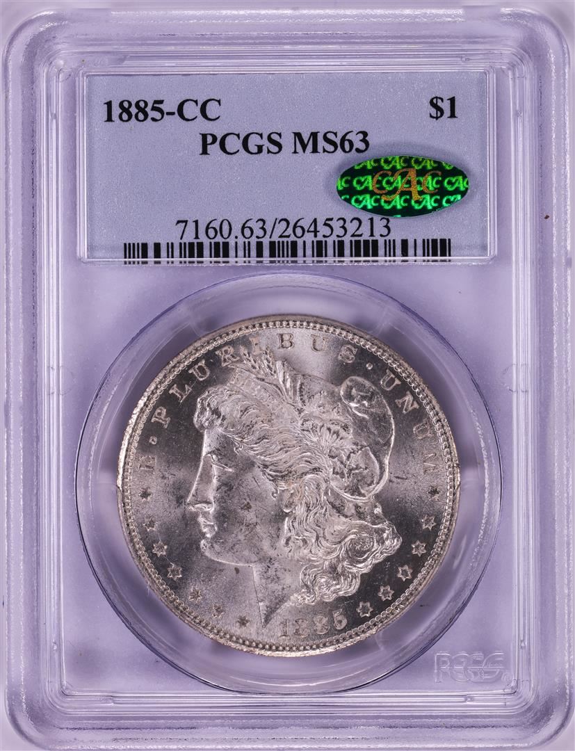 One 1885-CC $1 Morgan Silver Dollar Coin PCGS MS63 CAC. PCGS Graded.