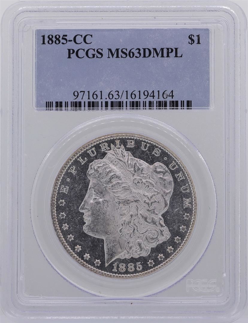 One 1885-CC $1 Morgan Silver Dollar Coin PCGS MS63DMPL. PCGS Graded.