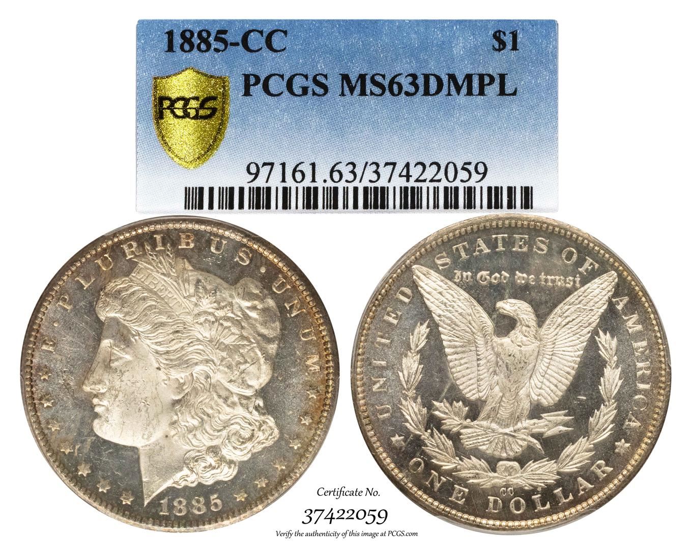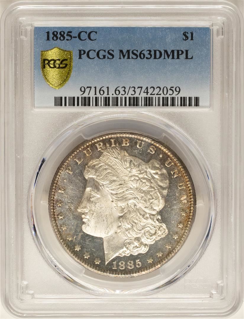 One 1885-CC $1 Morgan Silver Dollar Coin PCGS MS63DMPL. PCGS Graded.