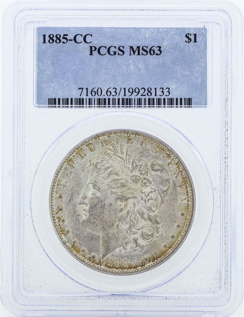 One 1885-CC $1 Morgan Silver Dollar Coin PCGS MS63. PCGS Graded.