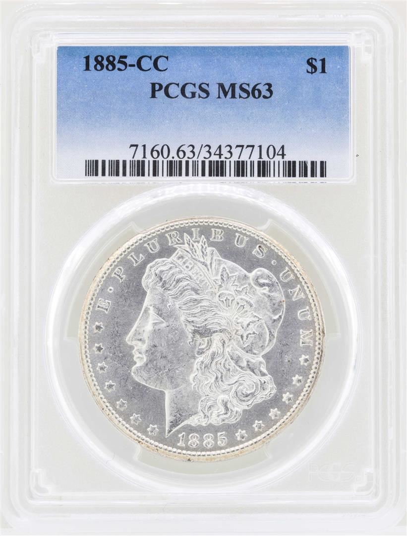 One 1885-CC $1 Morgan Silver Dollar Coin PCGS MS63. PCGS Graded.