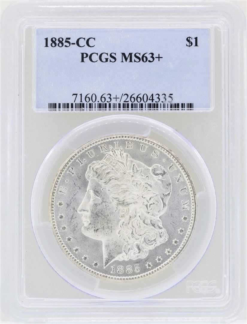 One 1885-CC $1 Morgan Silver Dollar Coin PCGS MS63+. PCGS Graded.