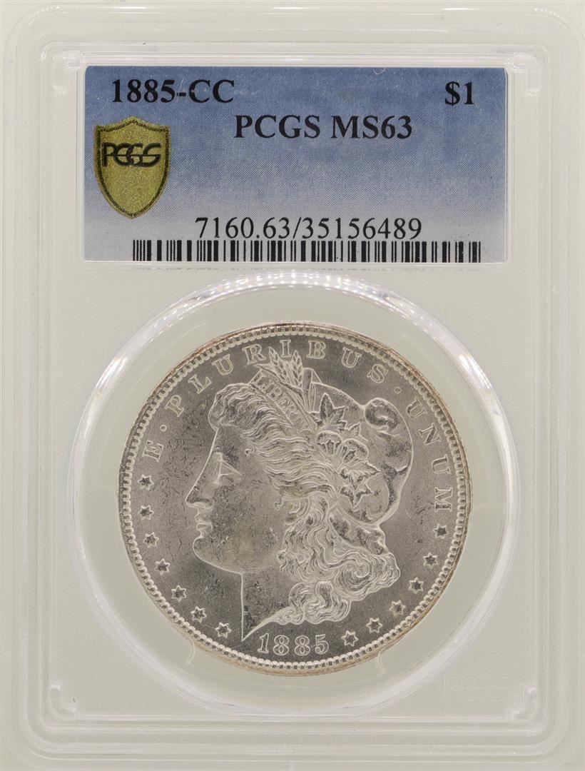 One 1885-CC $1 Morgan Silver Dollar Coin PCGS MS63. PCGS Graded.