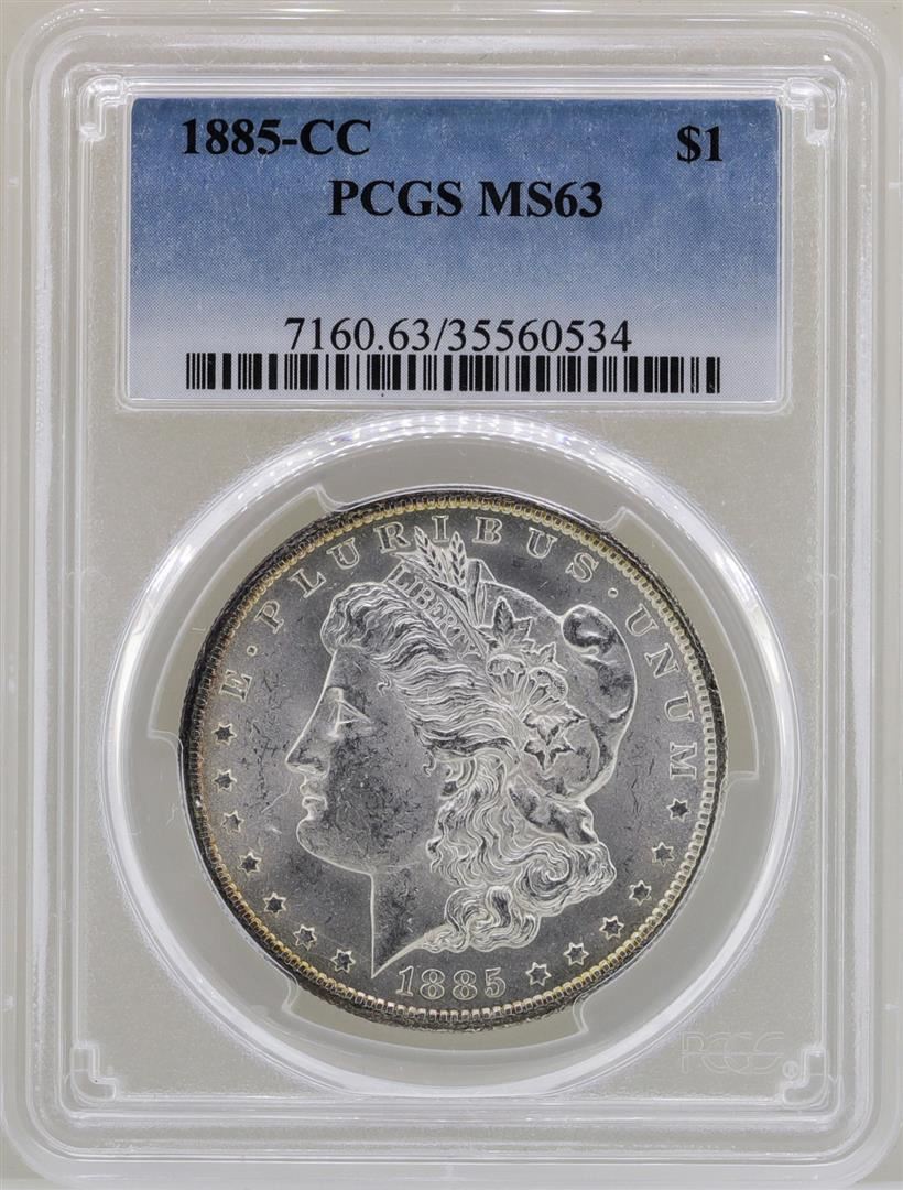 One 1885-CC $1 Morgan Silver Dollar Coin PCGS MS63. PCGS Graded.