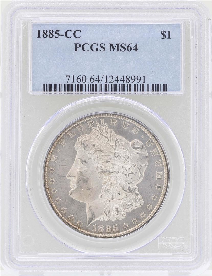 One 1885-CC $1 Morgan Silver Dollar Coin PCGS MS64. PCGS Graded.