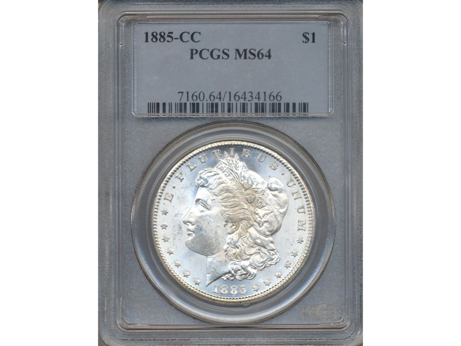 One 1885-CC $1 Morgan Silver Dollar Coin PCGS MS64.