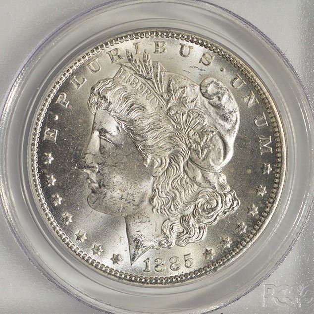 One 1885-CC $1 Morgan Silver Dollar Coin PCGS MS64.