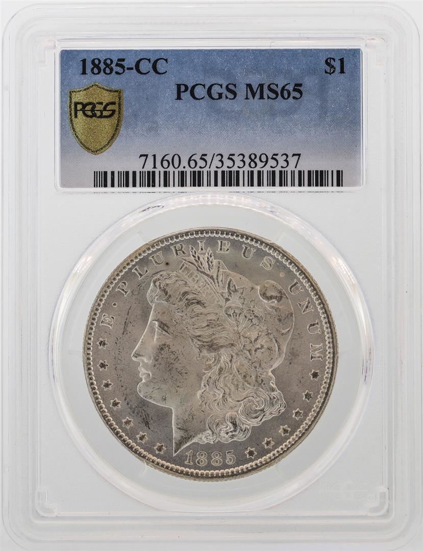 One 1885-CC $1 Morgan Silver Dollar Coin PCGS MS65. PCGS Graded.