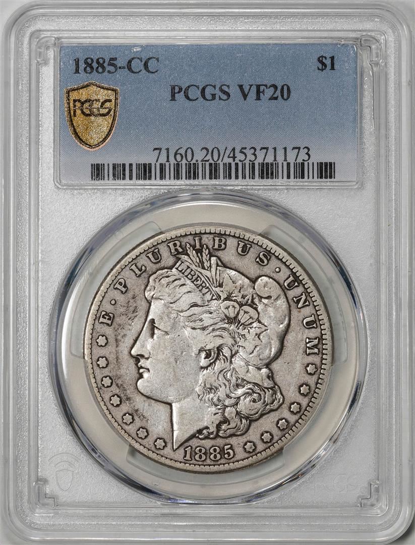 One 1885-CC $1 Morgan Silver Dollar Coin PCGS VF20. PCGS Graded.