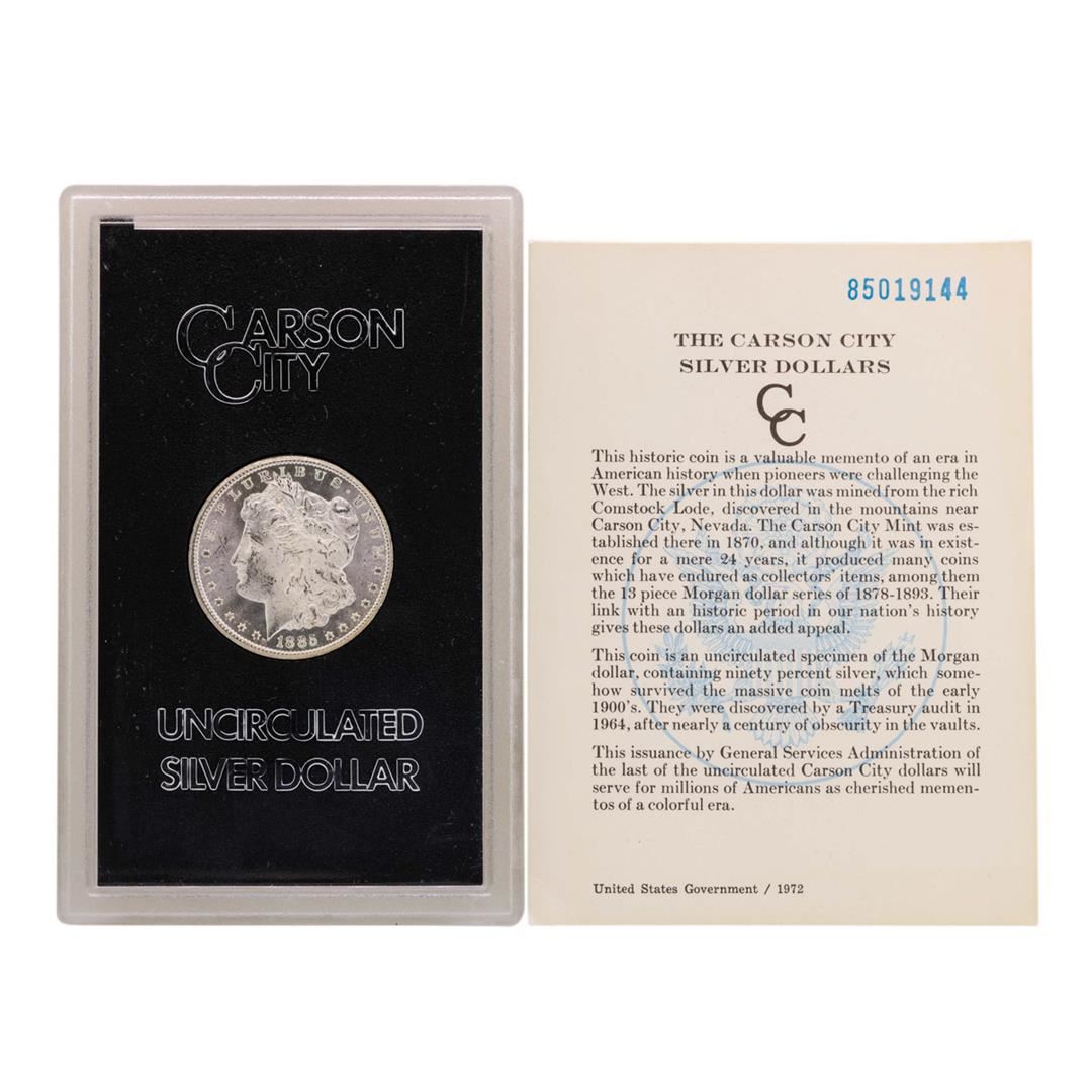 One 1885-CC $1 Morgan Silver Dollar Uncirculated Coin GSA w/ COA.