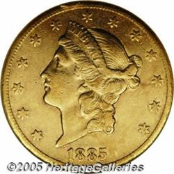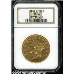 <B>1885-CC $20 XF45 NGC.</B></I> Pleasing honey-gold color with light abrasions on both sides. A minor rim bruise is located on the obverse at 11:30. The surfaces retain considerable luster. This is an important example of a low-mintage issue, one of just 9,450 coins struck.