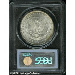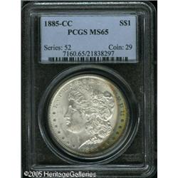 <B>1885-CC<img border='0' src='http://www.heritagecoins.com/images/star.gif' width=10 height=10>$1 MS65 PCGS.</B></I> A lovely Gem with frosty silver luster and a crescent of iridescent color along the right obverse border. Lot:10196
