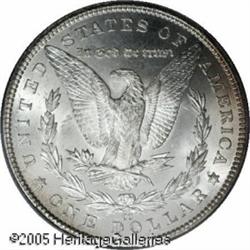 <B>1885-CC<img border='0' src='http://www.heritagecoins.com/images/star.gif' width=10 height=10>$1 MS66 PCGS.</B></I> Untoned save for a splash of orange and blue toning on the upper left obverse. A well defined, no-questions Gem with satiny, coruscant luster. Lot:10200
