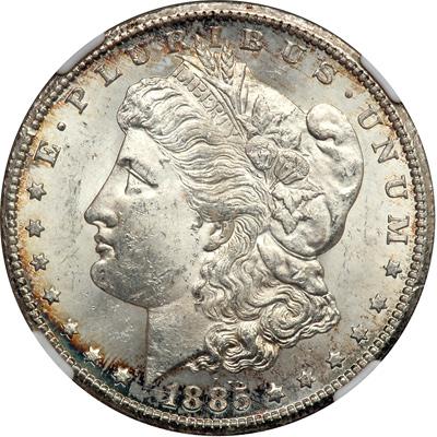 1885-CC Morgan Dollar. NGC graded MS-63. Frosty. A trace of subtle toning on both sides (PCGS # 7160) .