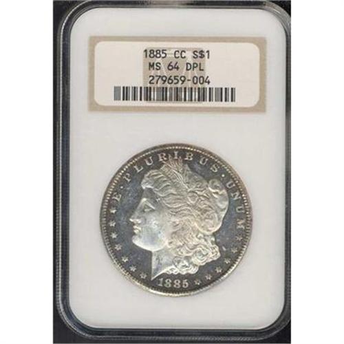 <b>1885-CC Morgan Dollar. NGC graded MS64 DPL.</b> A sparkling deep mirror specimen bursting with luster, untoned and white in appearance from the heavily frosted devices. The surfaces are clear of all but a few widely scattered (and light) bagmarks <b>(PCGS # 97161)</b>