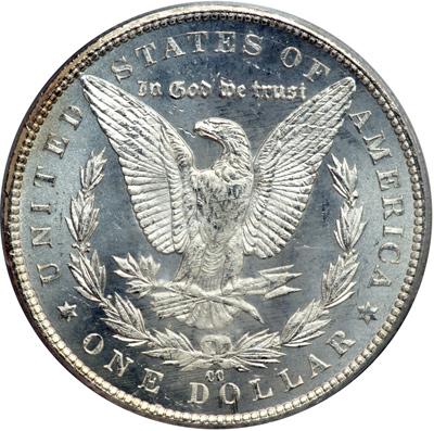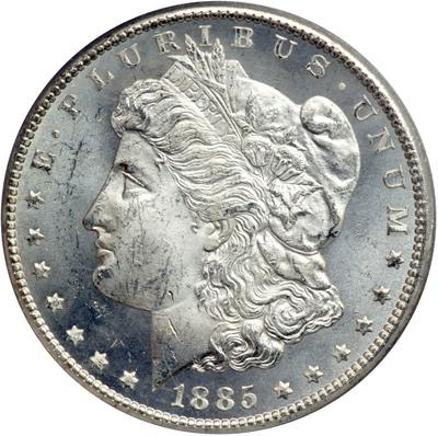 1885-CC Morgan Dollar. PCGS graded MS-63. Semi-reflective surfaces are choice and gleaming (PCGS # 7160) .