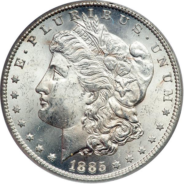 1885-CC Morgan Dollar. PCGS graded MS-63. Untoned, frosty and choice (PCGS # 7160) .