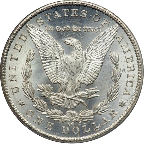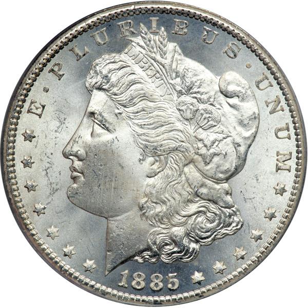1885-CC Morgan Dollar. PCGS graded MS-64. A nice white coin with characteristic full frosted luster on both sides (PCGS # 7160) .